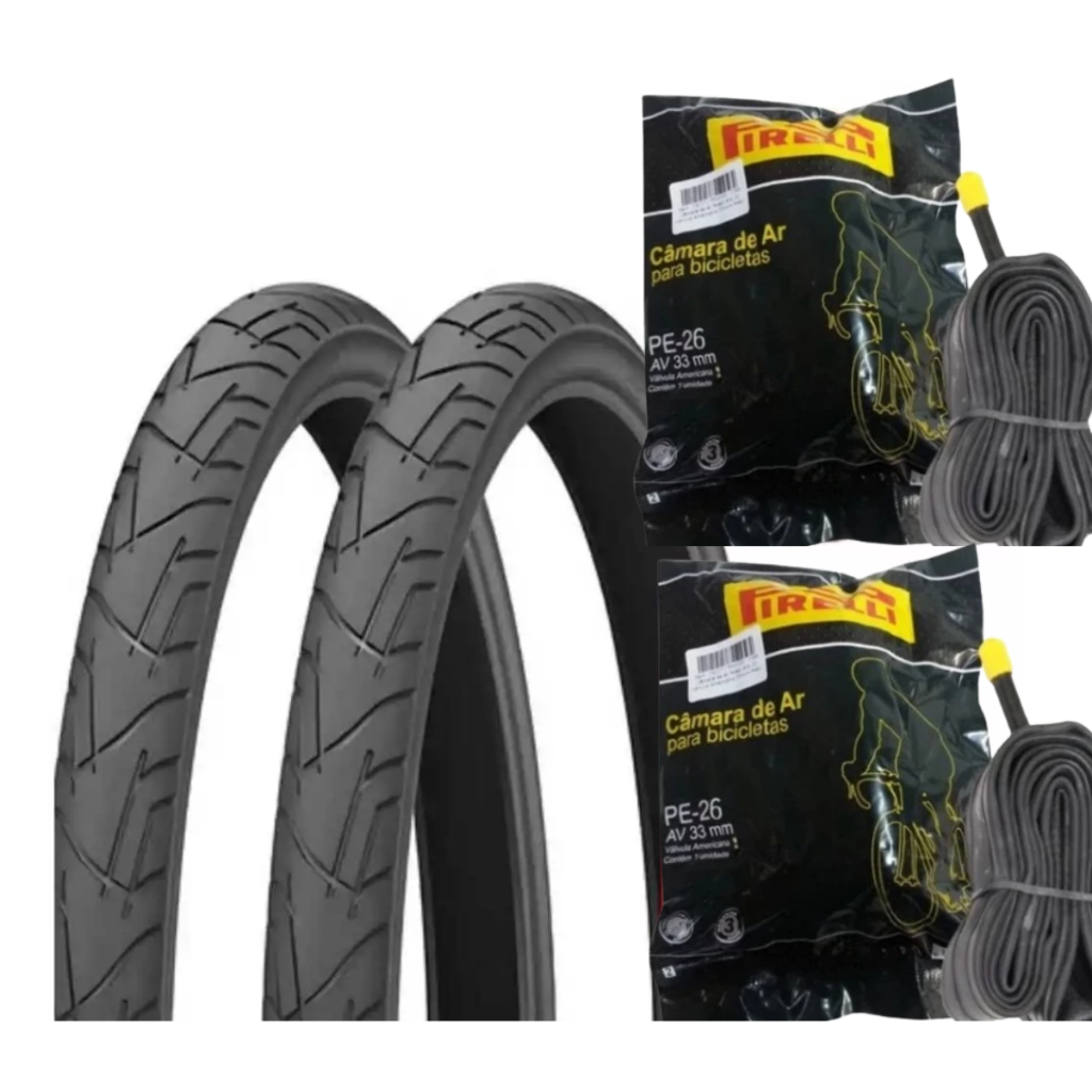 Par Pneu Aro 26 x 1.95 + 2 Camara Bike Levorin Excess Largo Bicicleta Comum Tradicional Barato (4 Peças)