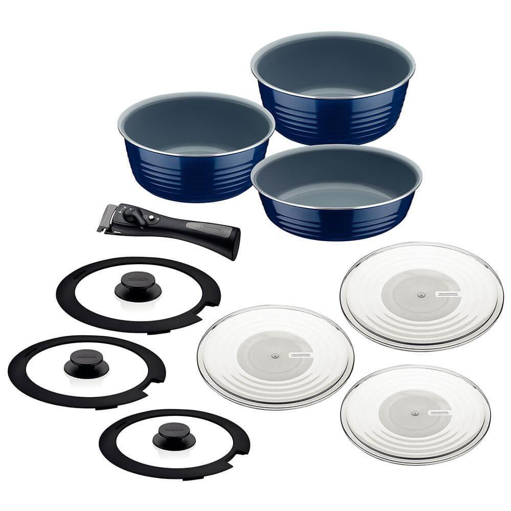 Jogo de Panelas Multiuso Tramontina Itria em Alumínio com Revestimento Cerâmico e Cabo Removível Azul 10 Peças 20999100