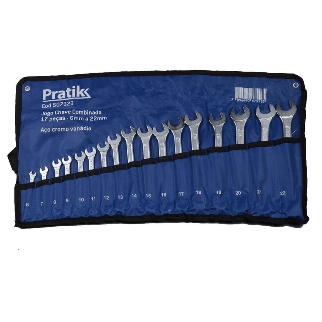 Jogo de Chaves Combinadas 17 Peças 6mm a 22mm Cromo Vanádio