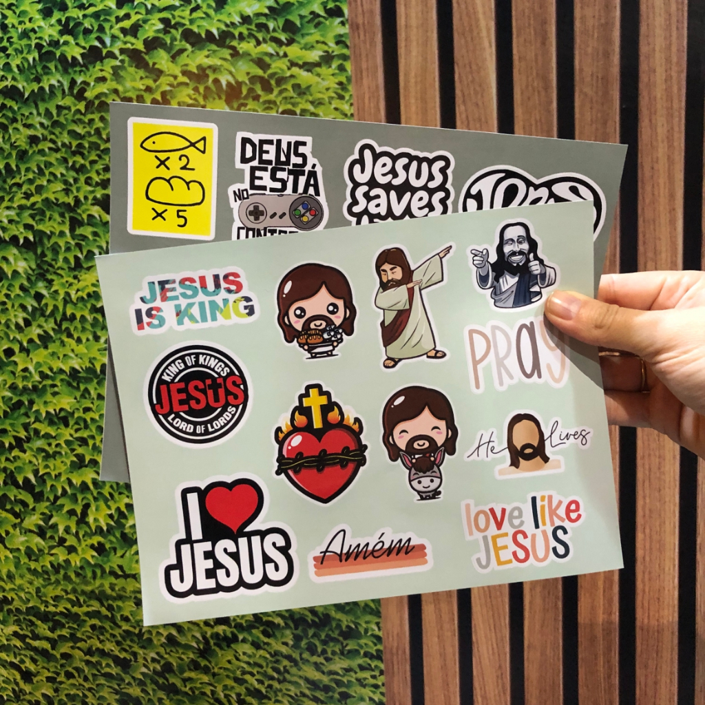 Cartelas Adesivo Vinil Gospel Cristão Evangélico Jesus para colar Biblia, Caderno, Celular, Tablet, Notebook, Carro, Instrumento Cristo