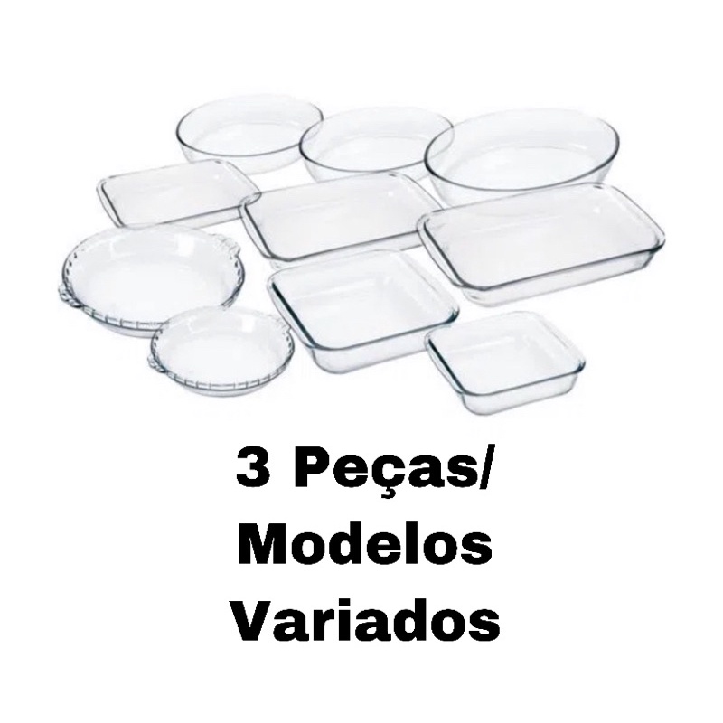 Conjunto Jogo Travessas Marinex 3 (TRÊS) Peças Modelos Variados Assadeiras em Vidro Temperado