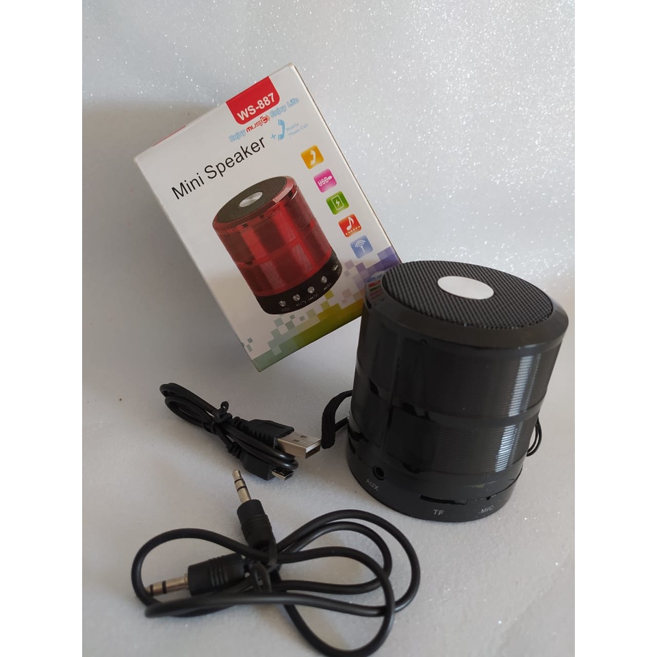 Mini caixa de som portátil Mini Speaker WS-887 com função: Bluetooth, Rádio FM, Wireless, Auxiliar e Cartão de Memória