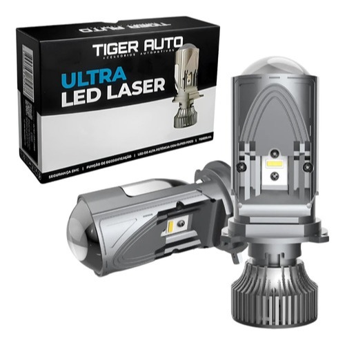 Kit Lâmpada H4 Ultra Led Laser Mini Projetor Canhão Super Foco Tiger