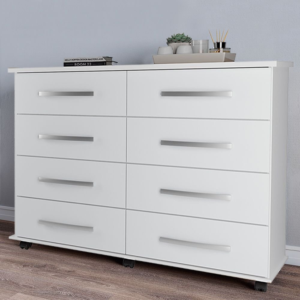 Cômoda com 8 Gavetas Pés Rodízios Jade – Branco – Móveis Primus