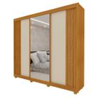 Guarda Roupas Casal Ripado 2,28m com Espelho 3 Portas 4 Gavetas Santorini Naturale/Off White Gelius