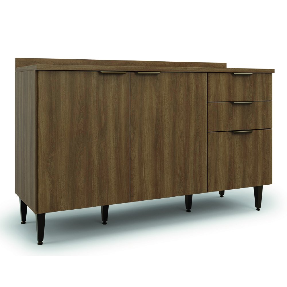 Balcão de Cozinha Triplo com Tampo 2 Portas 3 Gavetas 1,34m Nogal Paris Batrol