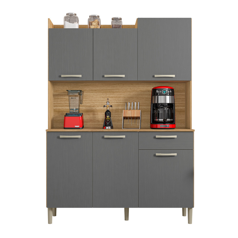 Kit Cozinha Compacta 130cm Com 6 Portas 1 Gaveta Alice Cinza Escuro - AJL Móveis