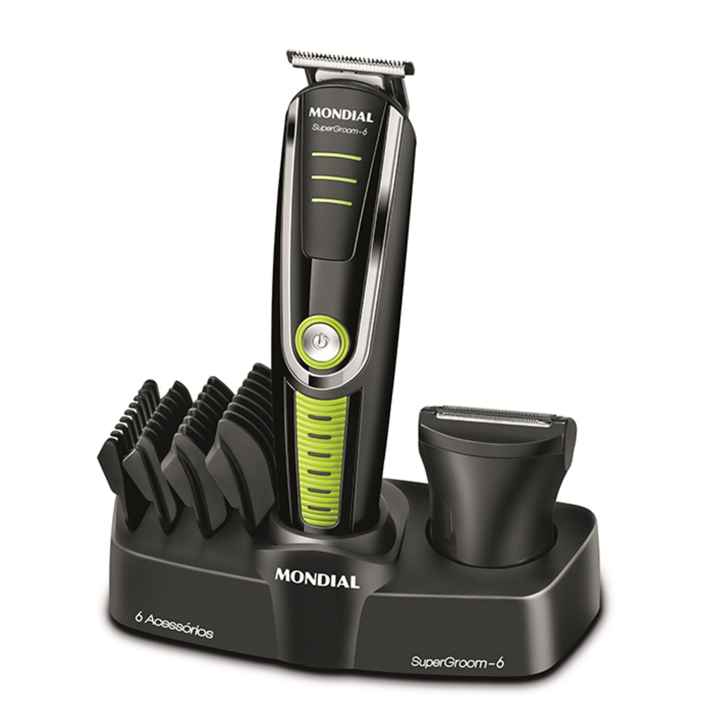 Aparador de Pelos Mondial Super Groom 6 em 1 BG-04 Sem Fio Preto/Verde - Bivolt