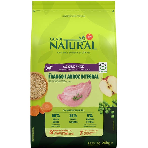 Ração Guabi Natural Frango e Arroz Integral para Cães Adultos Raças Médias 20kg