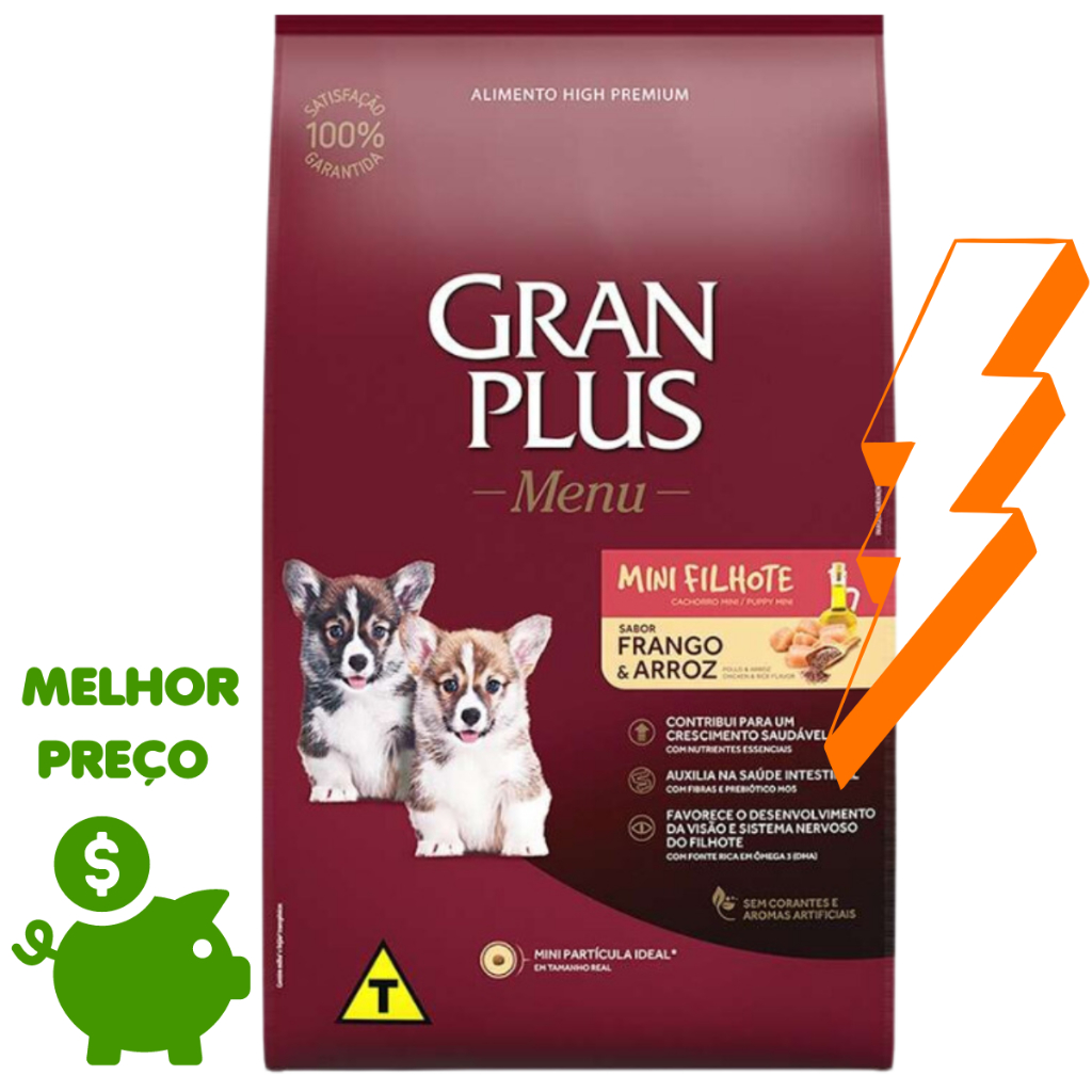 Ração GranPlus Menu Cães Filhotes Porte Mini Frango e Arroz 3kg