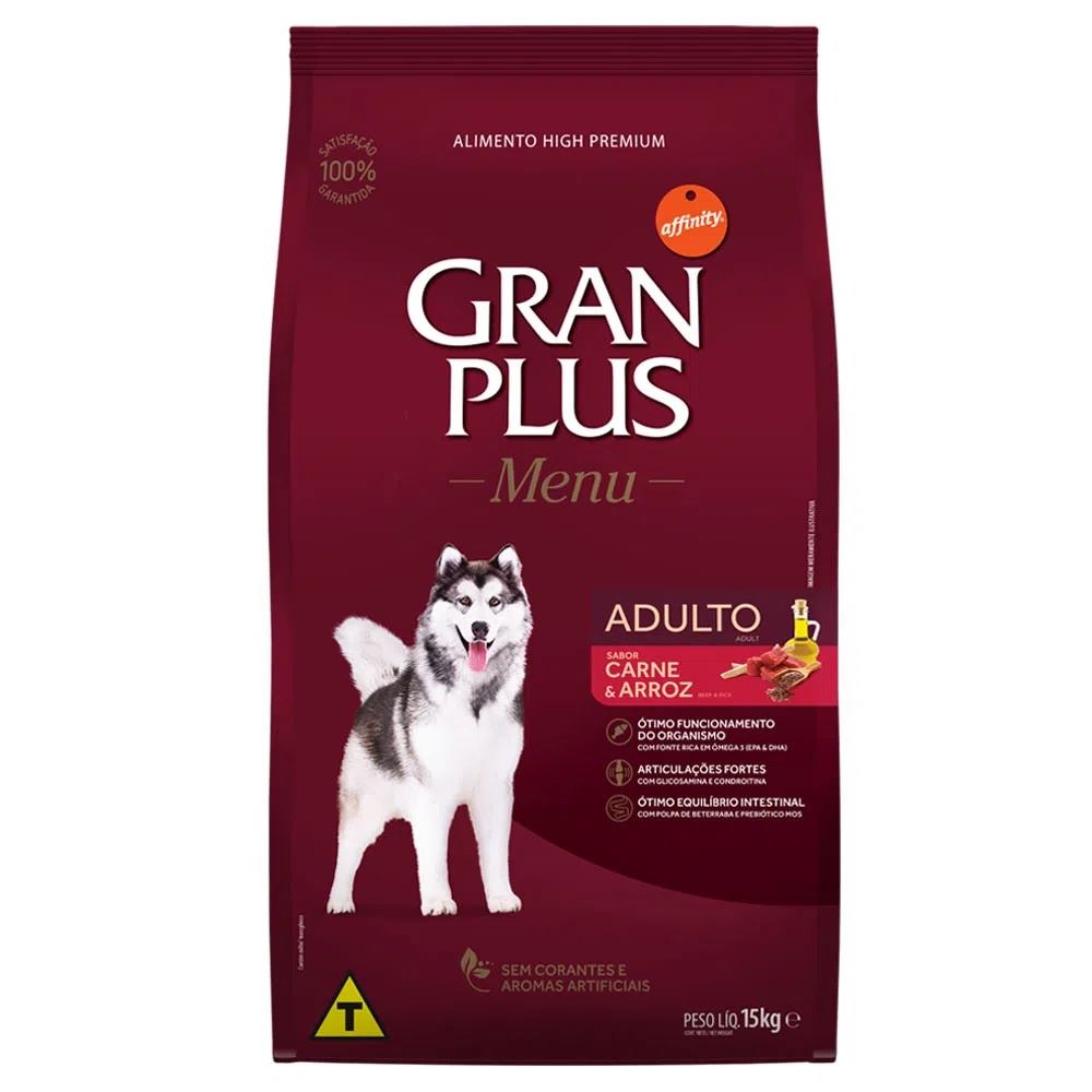 Ração Gran Plus 15kg Cães Menu Adultos Mini Carne E Arroz