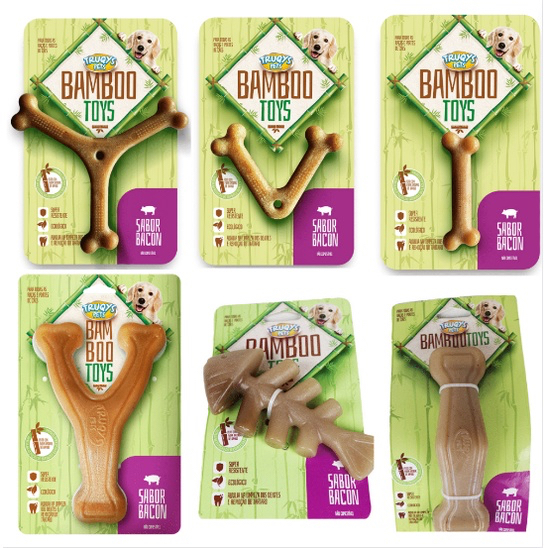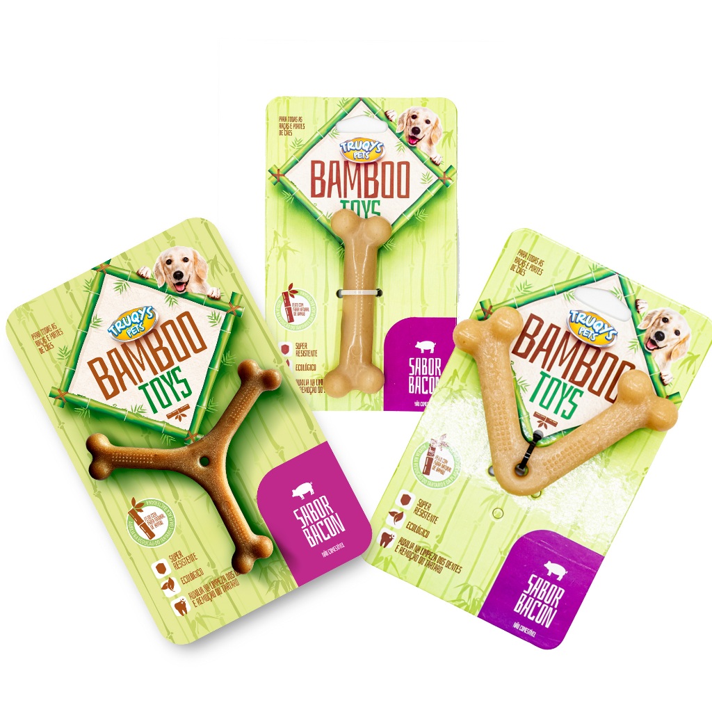 Kit Bamboo Toys Sabor Bacon Truqys Brinquedo Mordedor Osso Bamboo Toys Tam Pequeno I, V e Y