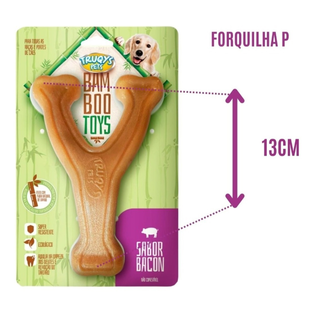 Brinquedo Osso Bamboo Mordedor Para Cães Sabor Bacon Truqys Pet Forquilha