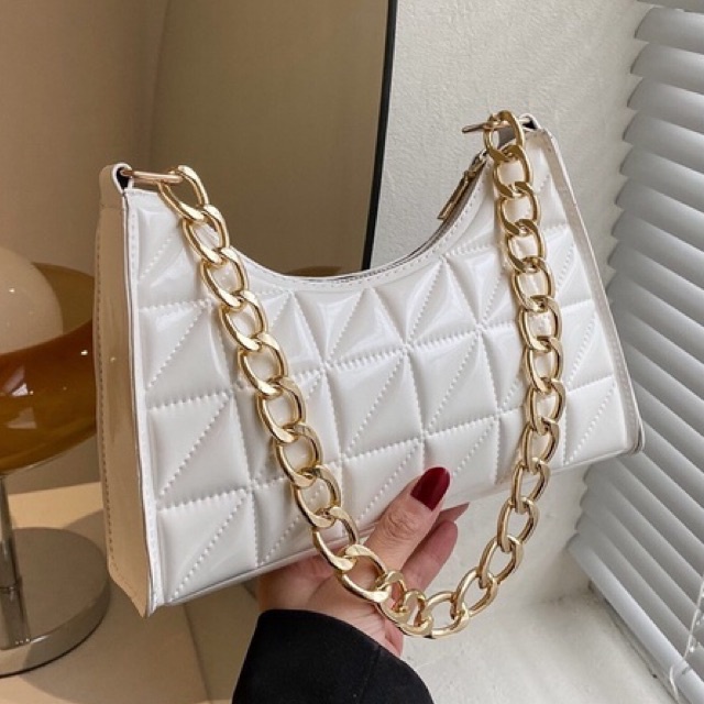 bolsa feminina de ombro baguete alça de corrente bolsa envernizada branca preta rosa nude
