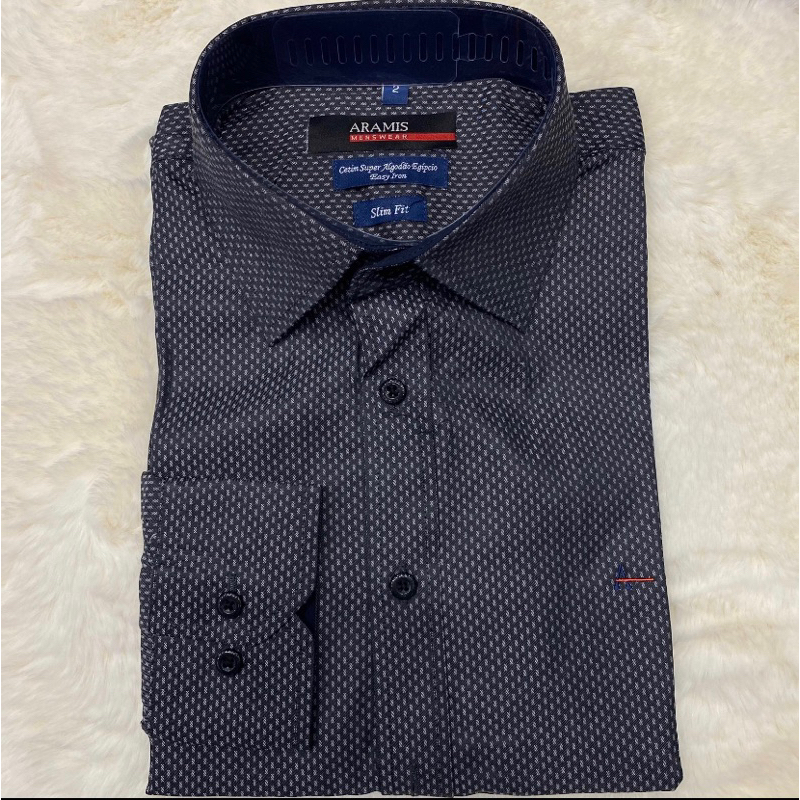Camisa Social Amil Slim Life Algodão Manga Longa Com Elastano Lançamento Luxo Marinho