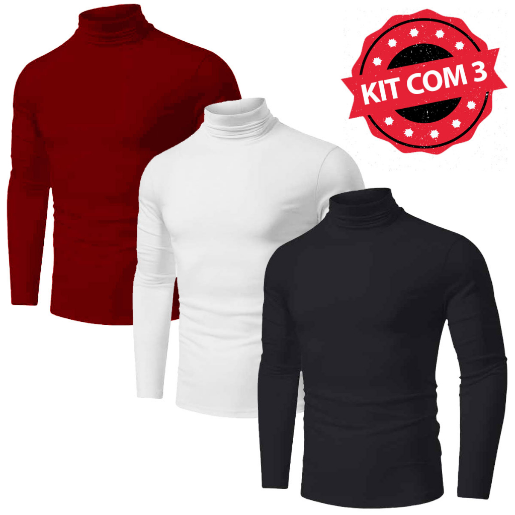 Kit com 3 Camisetas Masculinas Gola Alta Slim Fitness