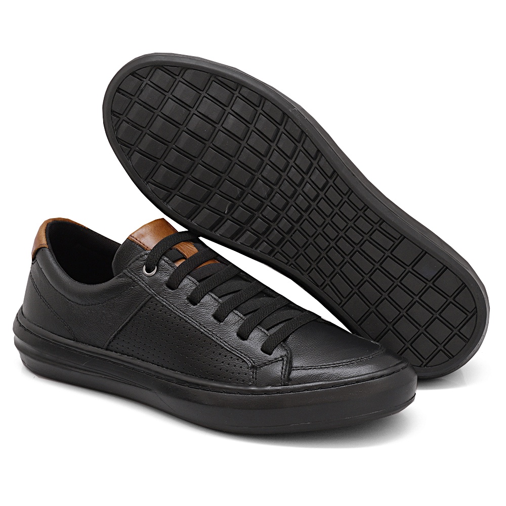 Sapatênis Masculino Original em Couro Legitimo Tenis Sneaker Sola Alta Black Style Preto Promoção