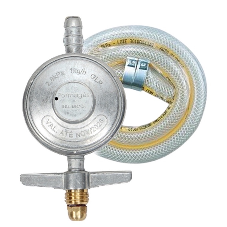 Registro Regulador de Gás kit com Mangueira 1,25m e 2 Abraçadeiras para Fogão - 1 kg/hora
