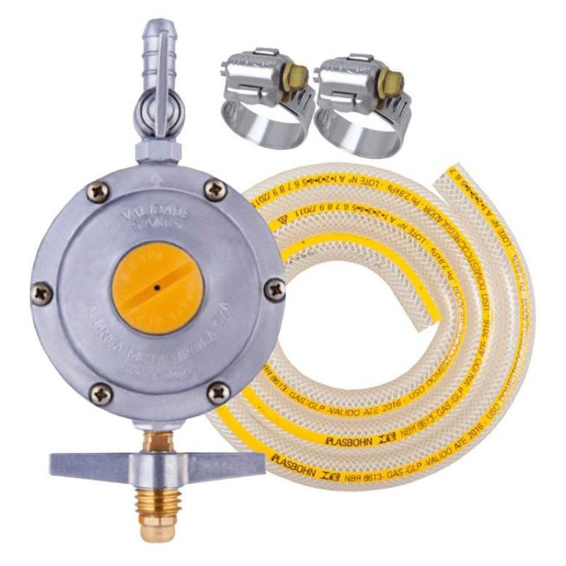 Kit Registro Regulador Gás de Cozinha Fogão para Botijão Com Mangueira 1,25m e 2 Abraçadeiras