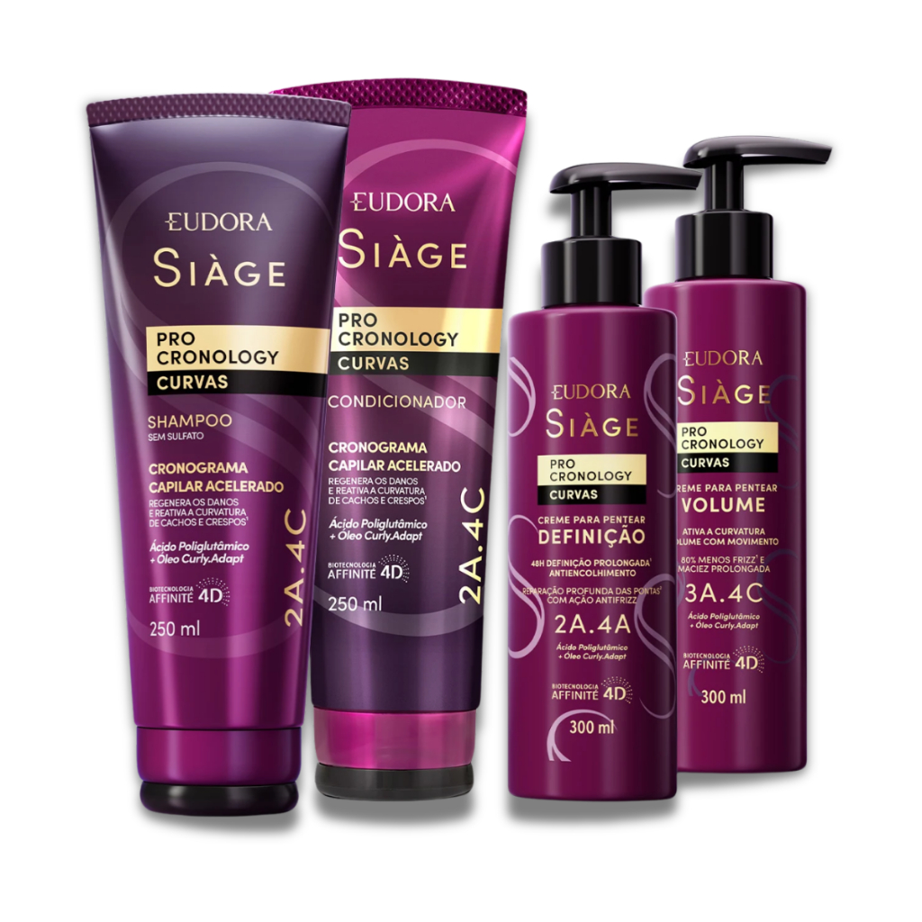 Combo Siàge Pro Cronology Curvas: Shampoo 250ml + Condicionador 250ml + Kit Cronograma Capilar Acelerado (3 itens)