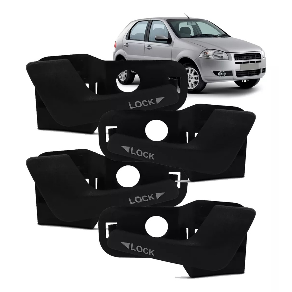 Kit 4 Maçaneta Interna Preta Porta Palio Siena Palio Weekend 2004 2005 2006 2007 2008 2009 2010 2011 2012
