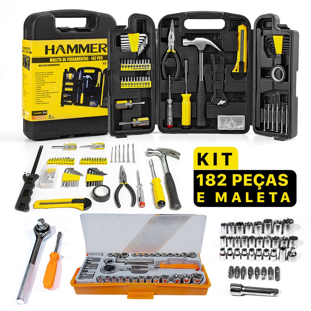 Kit de ferramentas manuais 182 peças com maleta - Hammer