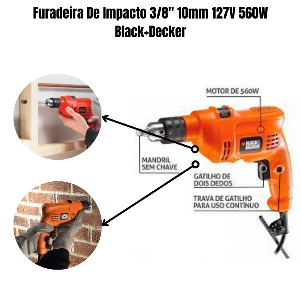 Furadeira De Impacto 3/8" 10mm 127V 560W Black Decker