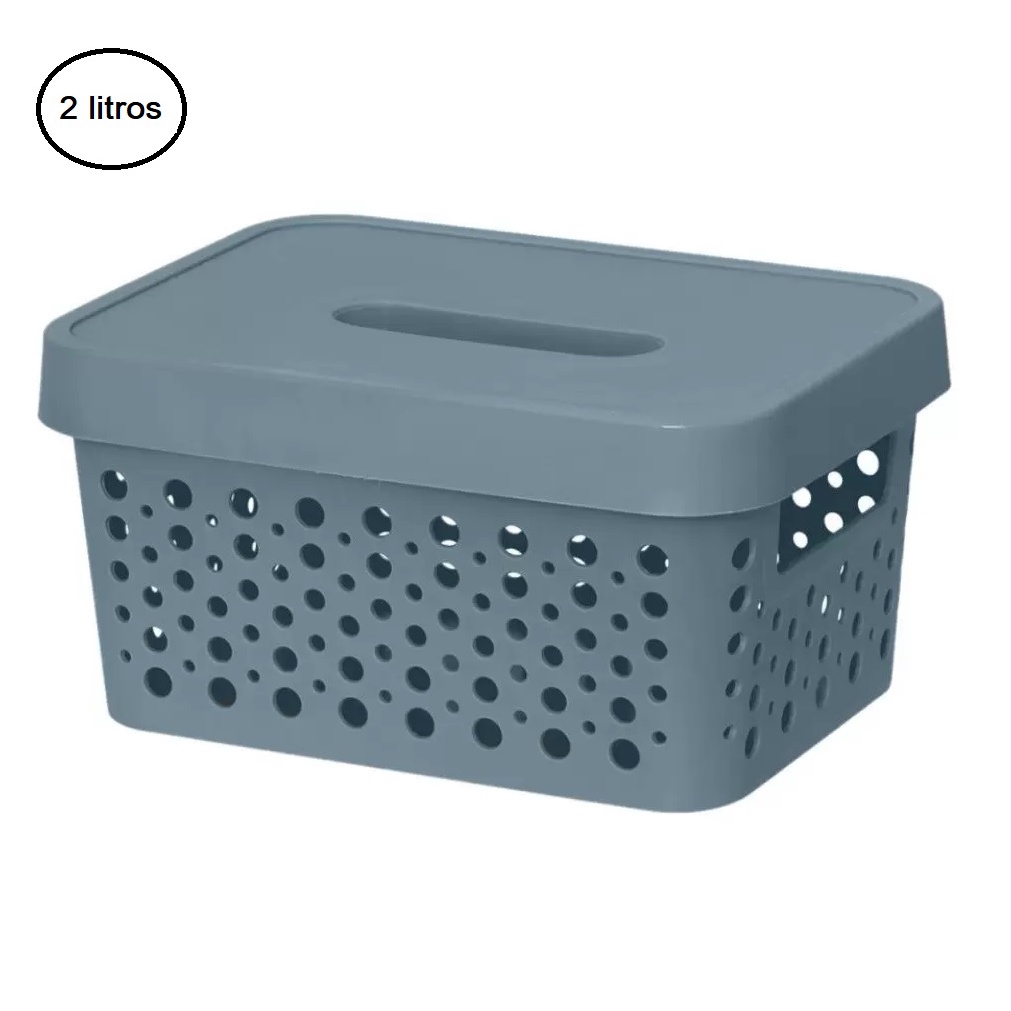 6 Caixa Organizadora Cesto Multiuso 26 Litros Azul Com Tampa Empilhavel Rattan