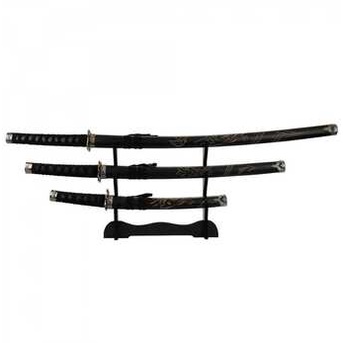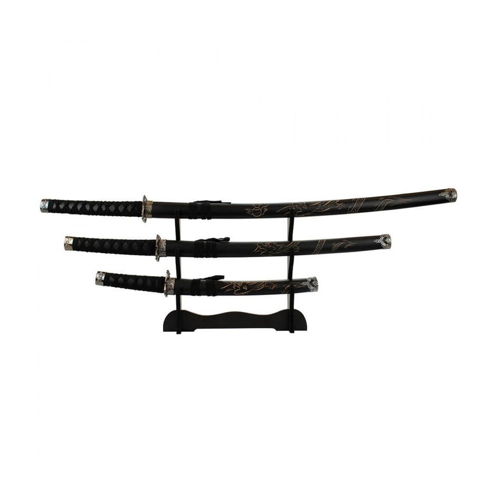 Jg 3 Espadas Decorativa Preta Japonesa Katana 100cm 79cm 54cm