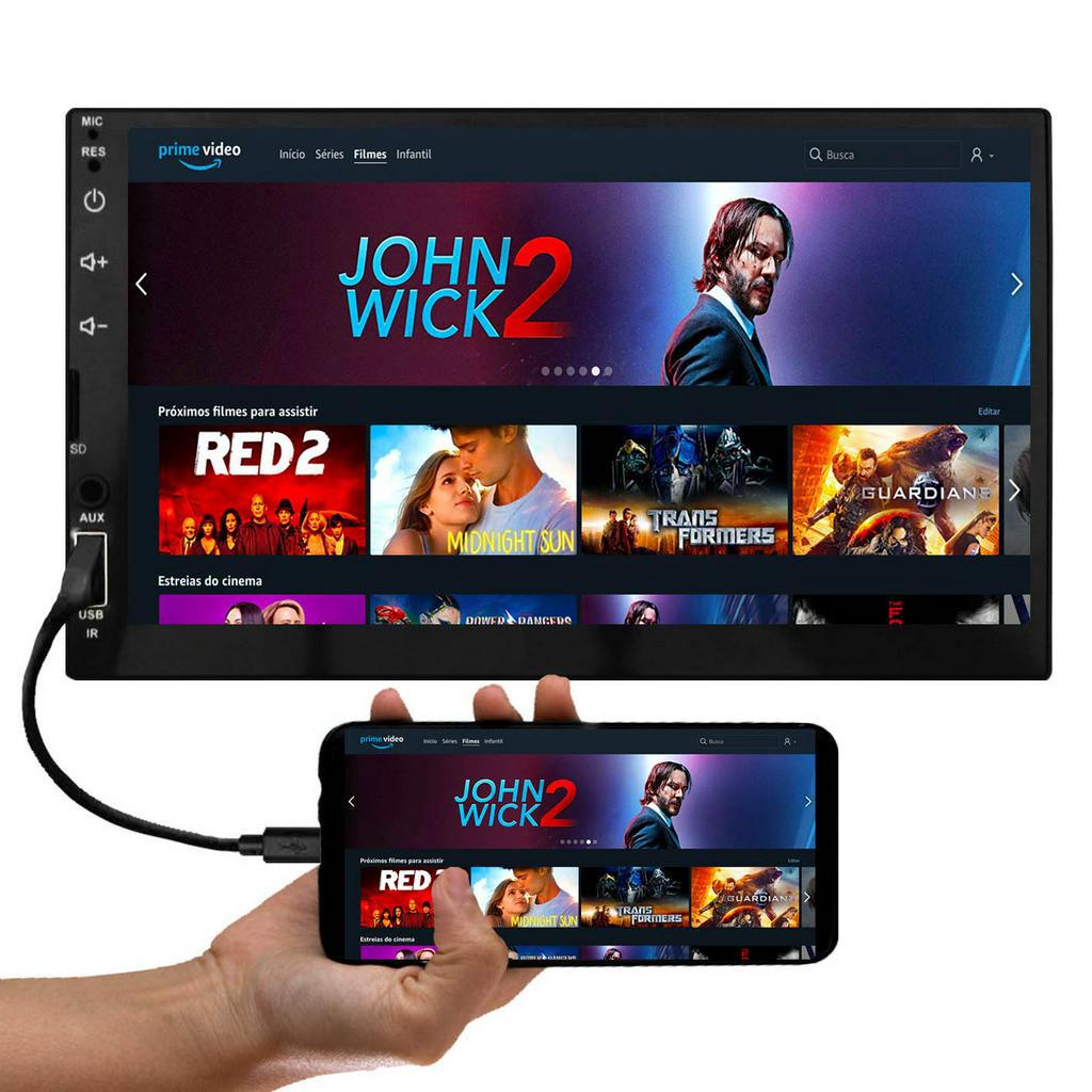 Central Multimídia 2 Din 7 Polegadas MP5 HT-3001 Bluetooth USB Aux FM Tela Full Touch Espelhamento Android e iOS H-Tech