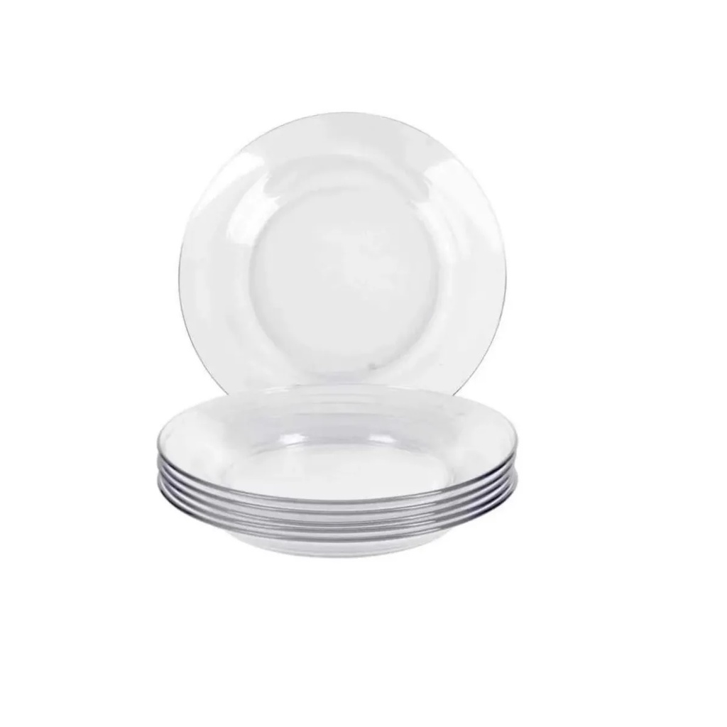 Kit Jogo12 Peças Jantar 06 Prato Astral Fundo + 06 Copo Amazon 190 ML Vidro Jogo Almoço Resistente Suco Refrigerante Coca Microondas Temperado Transparente Nadir Borda Liso Lisa Platos