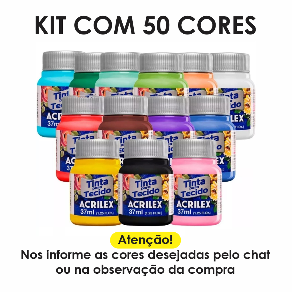Kit Com 50 Tintas De Tecido Acrilex 37ml - Escolha As Cores