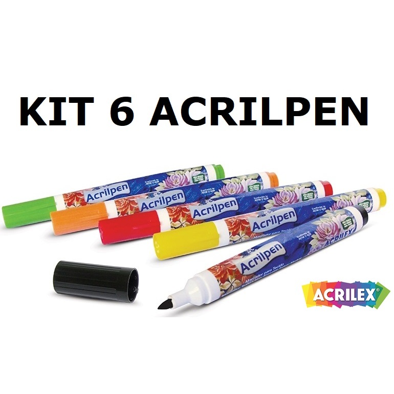 Kit com 6 Canetas Marcador de Tecidos Acrilpen - Escolha as cores pelo Chat