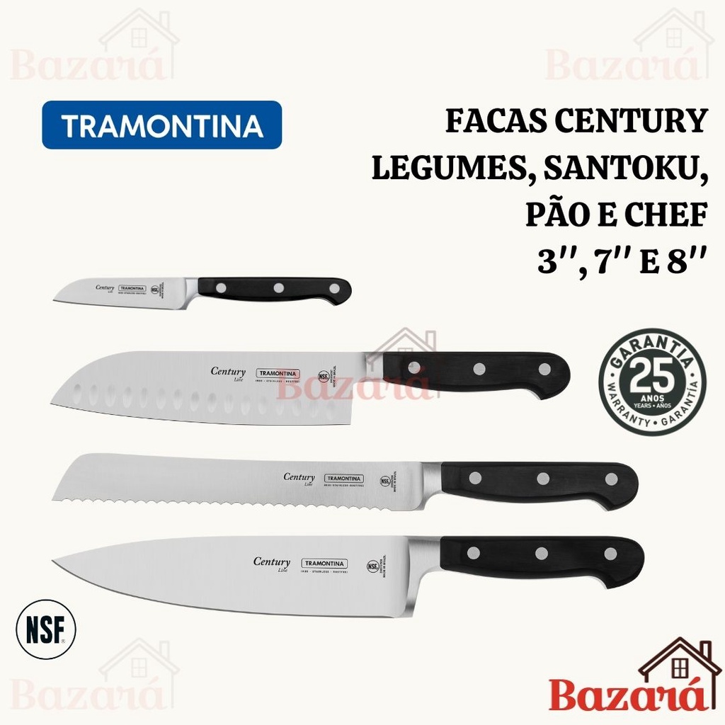 Faca Century Tramontina Legumes Pão Santoku Chef 3'', 7''e 8''