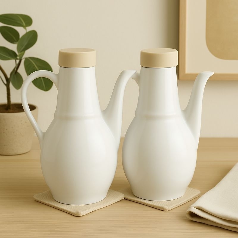 Kit 2 Porta Azeite e Vinagre de Porcelana Branca | Tampa Sintética, Ideal para Temperos e Mesa Posta
