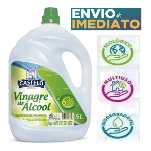 Vinagre De álcool Castelo De Limpeza E Bactericida 6% Acidez 5l Aromatizado Maçã Verde