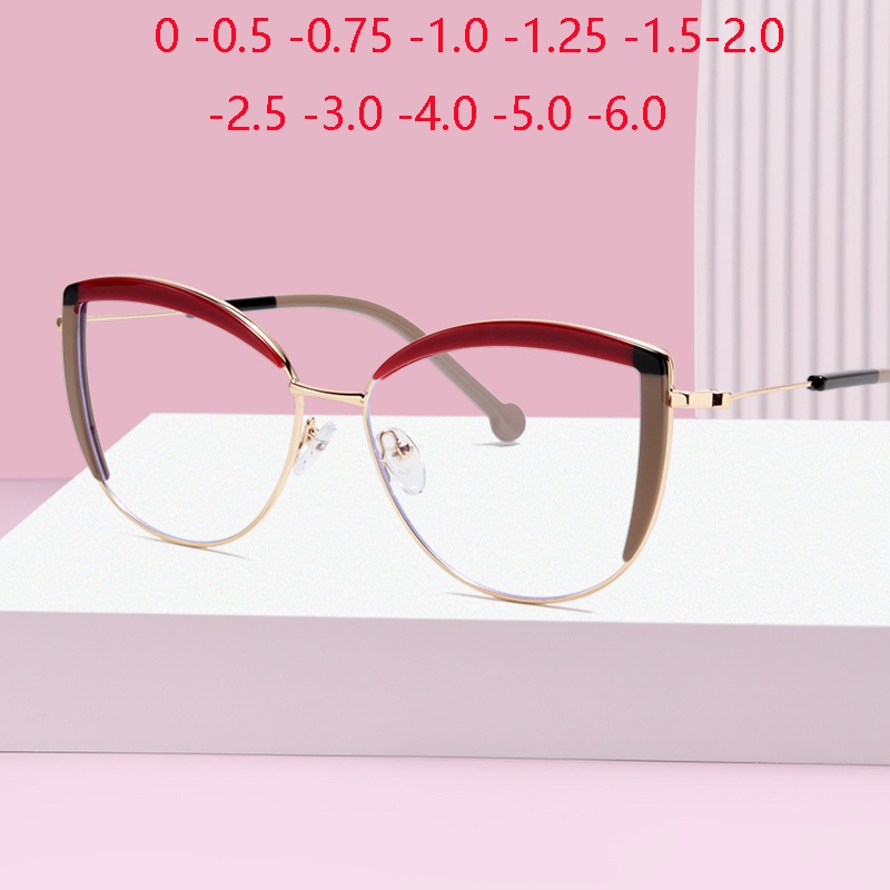 Vinho Tinto Moldura Olho De Gato Permeável Visão Óculos Para Mulheres Anti-Rays Azul Dobradiça De Prescrição 0-0,5-0,75 A-6.0