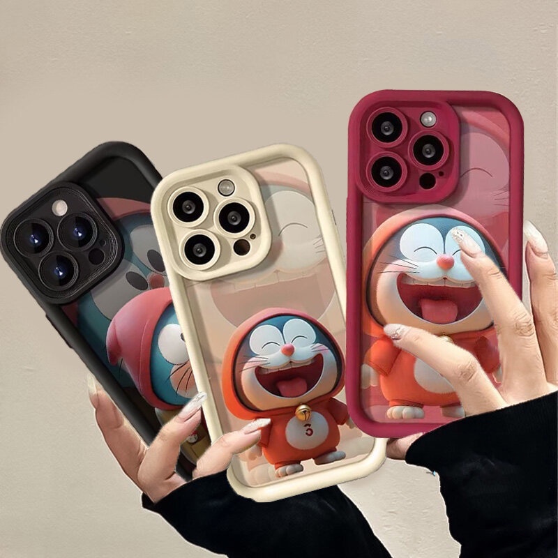Bonito Desenho Animado Doraemon Ding Dang Cat Vinho Tinto Silicone Capa De Macia Compatível Para iPhone 11 14 15 Plus Pro Max Grafite Anjo Olhos À Prova De Choque Moda