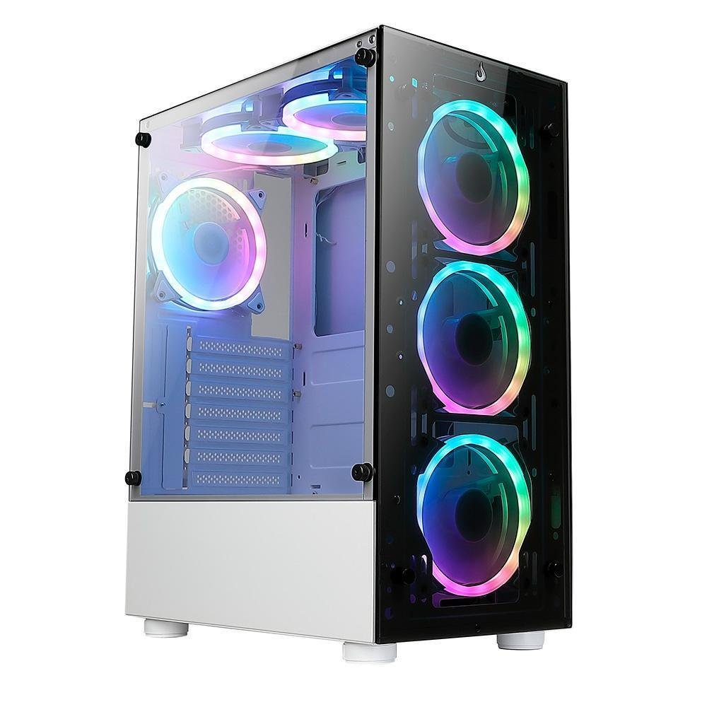Gabinete Gamer Rise Mode Glass 06x 6 Fans S/fonte Midtower ARGB Atx Vidro Temperado Branco - Rm-ca-06xw-aRGB
