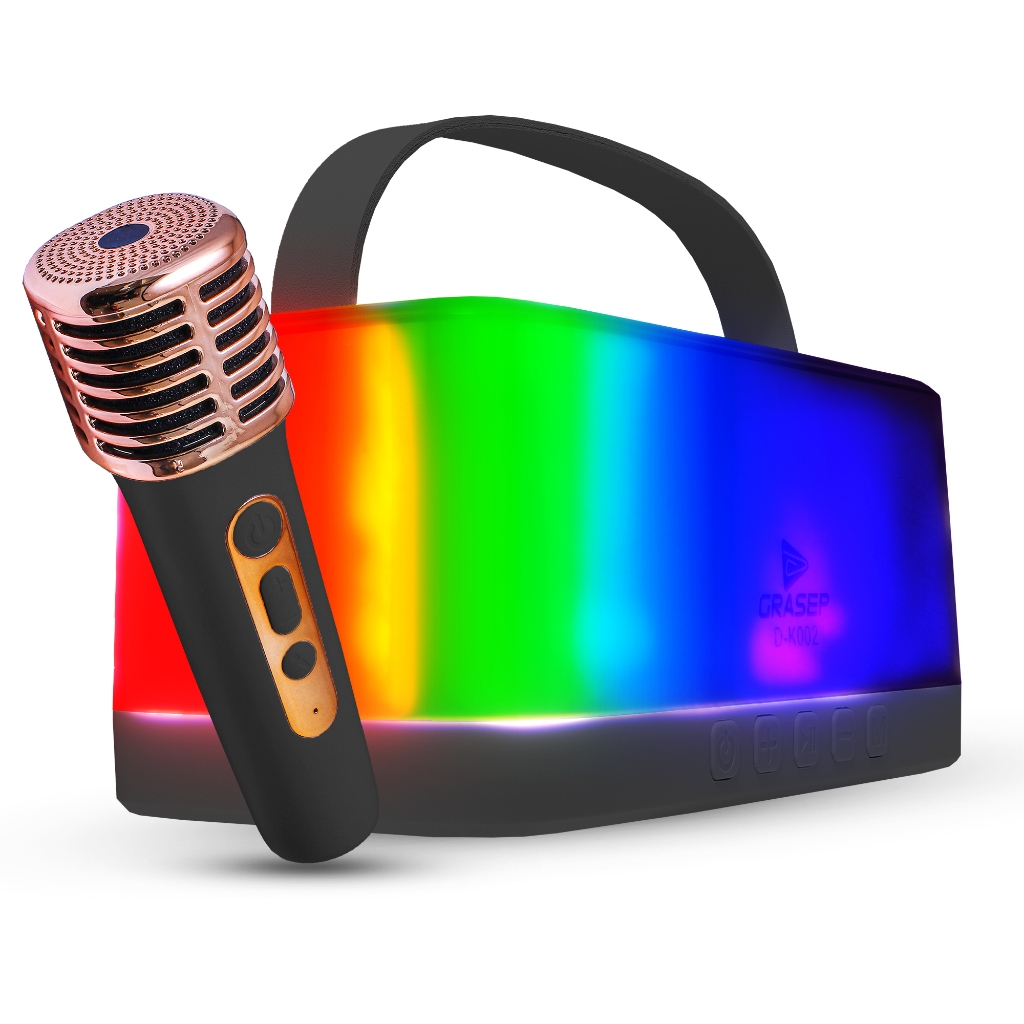 Caixa De Som Bluetooth 5.3 TWS Subwoofer Portátil LED RGB Karaokê Entrada AUX USB Micro SD Radio FM