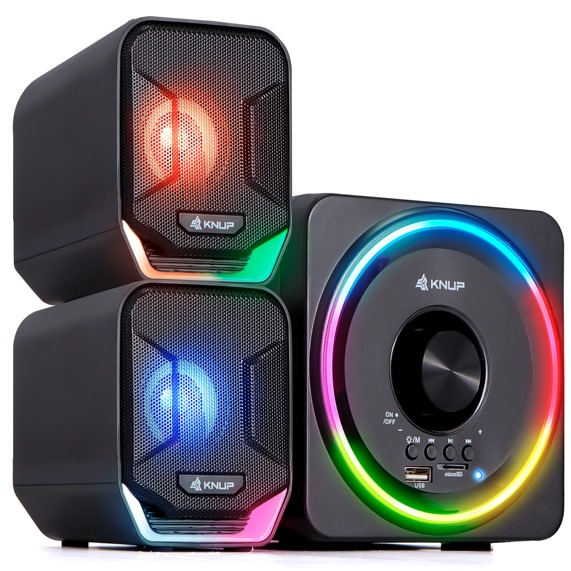 Caixa de Som Gamer Subwoofer Bluetooth 16W Rms Real Estéreo Iluminação Led Rgb Mp3 Entrada Usb Pendrive Cartão Micro SD Pc Computador Notebook Mac Celular Tv Smart