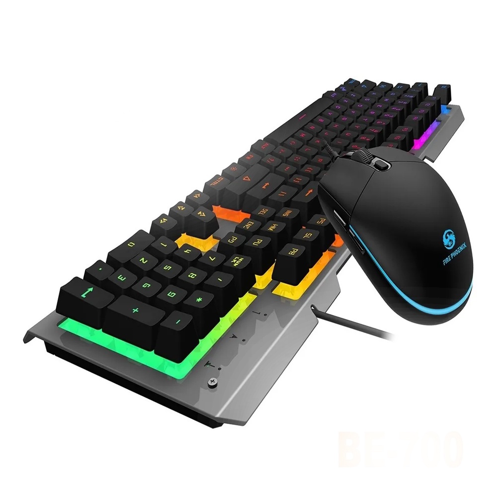 Kit Teclado E Mouse Mecanico Silencioso Abnt2 Gamer Led Rgb Be-700