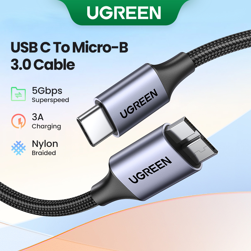 Cabo USB Ugreen C Para Micro B 3.0 5Gbps 3A De Sincronização Rápida De Dados Disco Rígido De Macbook Caixa SSD Tipo