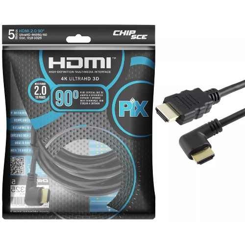 Cabo HDMI L Pix, 5M, 90 Graus, Blindado, 2.0 Ethernet, 4K - 3D018-3325