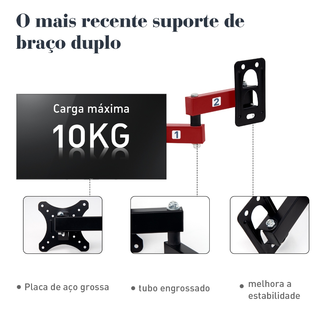 Suporte articulado para televisao e monitores fixado na parede para TV de 10 A 55 Triarticulado com Inclinação Long