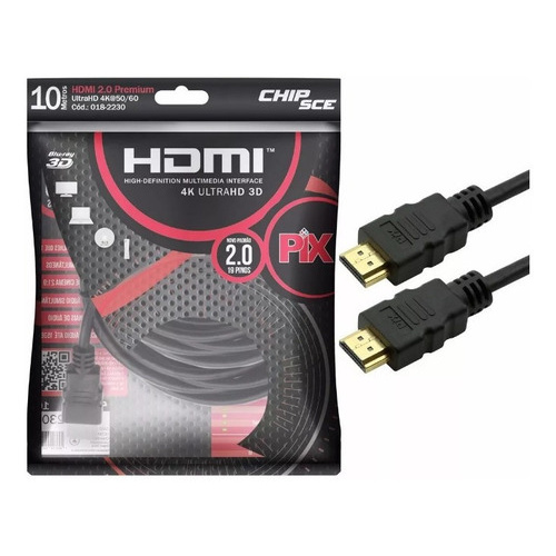 Cabo Hdmi 10 Metros 2.0 19 Pinos Ethernet 4k Ultrahd Polibag