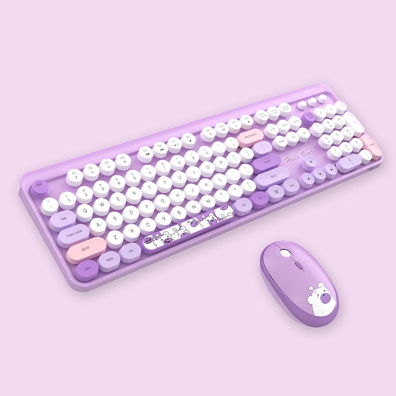 JOMAA & MOFII mouse Sem Fio Para Máquina De Escrever , Teclado 2.4G Escritório Em Tamanho Real Com Teclas Circulares , Adequado laptops , desktops , Ma c (Roxo)