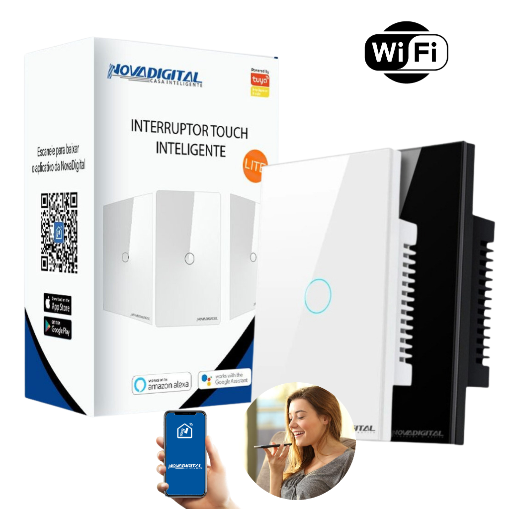Interruptor WIFI Lite Inteligente 1 Botão Smart Touch Alexa Original Nova Digital