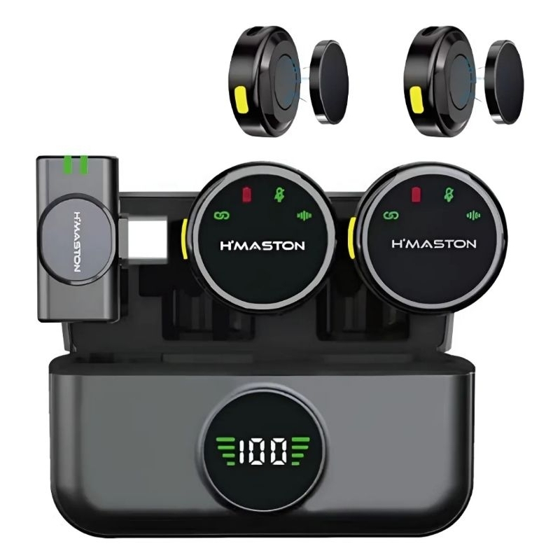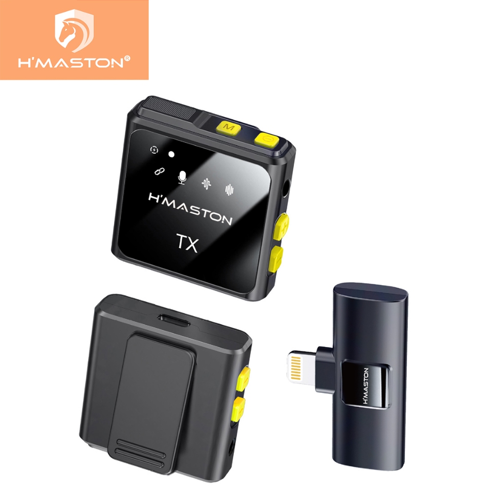 H'maston Microfone Sem Fio Duplo Lapela Profissional Lapel microphone Vlog Compatível Tipo C e iPhone Para Gravação De Vídeo Áudio Blog Live
