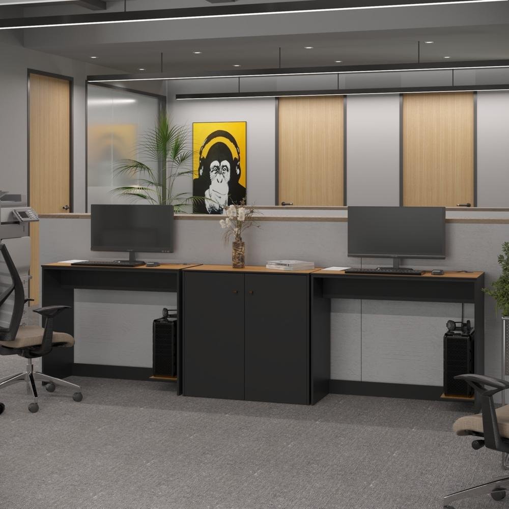 Conjunto de Escritório 3 Peças Smart Office 2 Mesas e 1 Aparador Buffet - Preto e Cedro